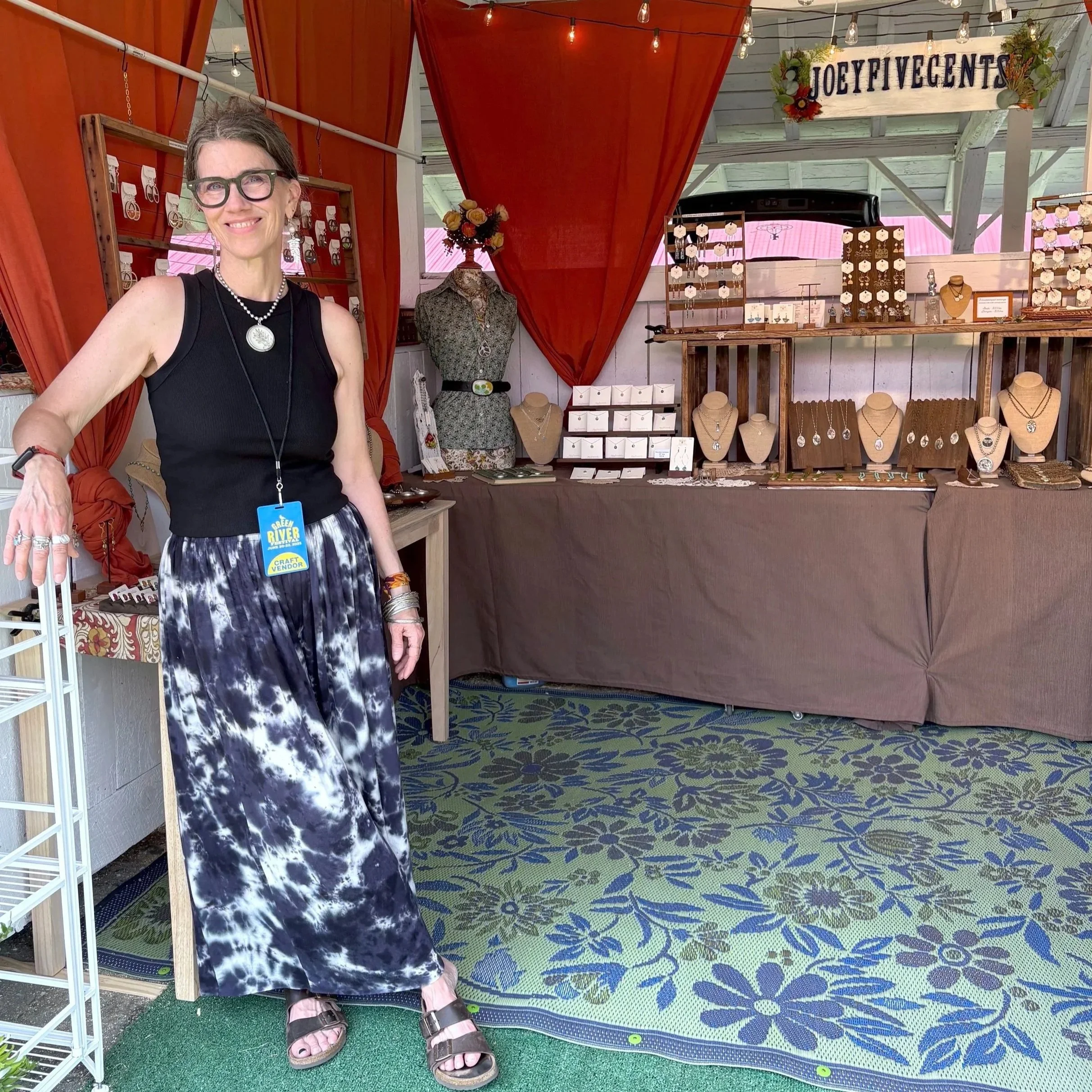 Susan Forker is a collector, curator & maker, but began her career as a film editor in New York and then Los Angeles after her graduation from Syracuse University. After moving to Bucks County, PA with her family in 2006, her background as a visual storyteller and interests as a vintage collector led her to create joeyfivecents, a brand of storied handmade jewelry and vintage style that repurposes antique ephemera and resin.